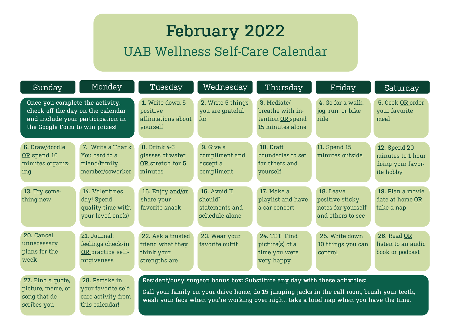 February 2025 Wellness Calendar. National health observances (nhos) are special days, weeks, and months dedicated to raising awareness about important health topics. These calendars will help you plan and manage your tasks more productively.